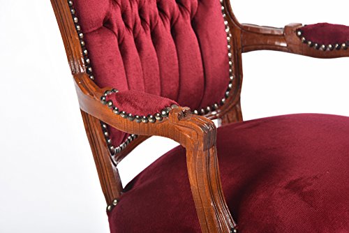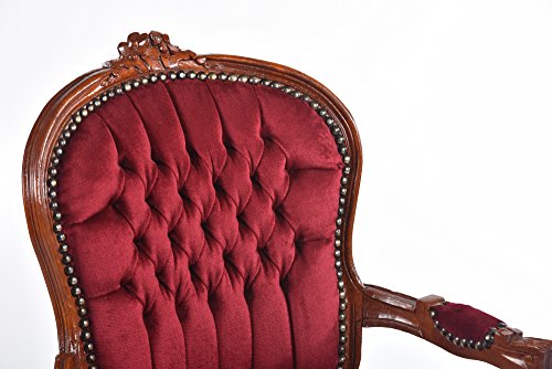 Poltrona Barocco Luis Stile Francese Luigi XVI Marrone e Rossa Tessuto 63 x 65 x 94 cm