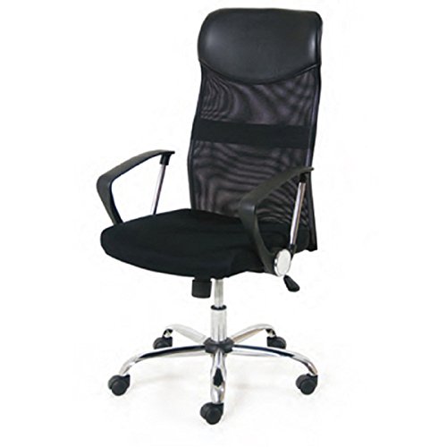 Poltrona direzionale imbottita "New York" con struttura in metallo cromato, braccioli cromati con passamano in polipropilene e rifinitura di colore nero - 60 x 59 x 116
