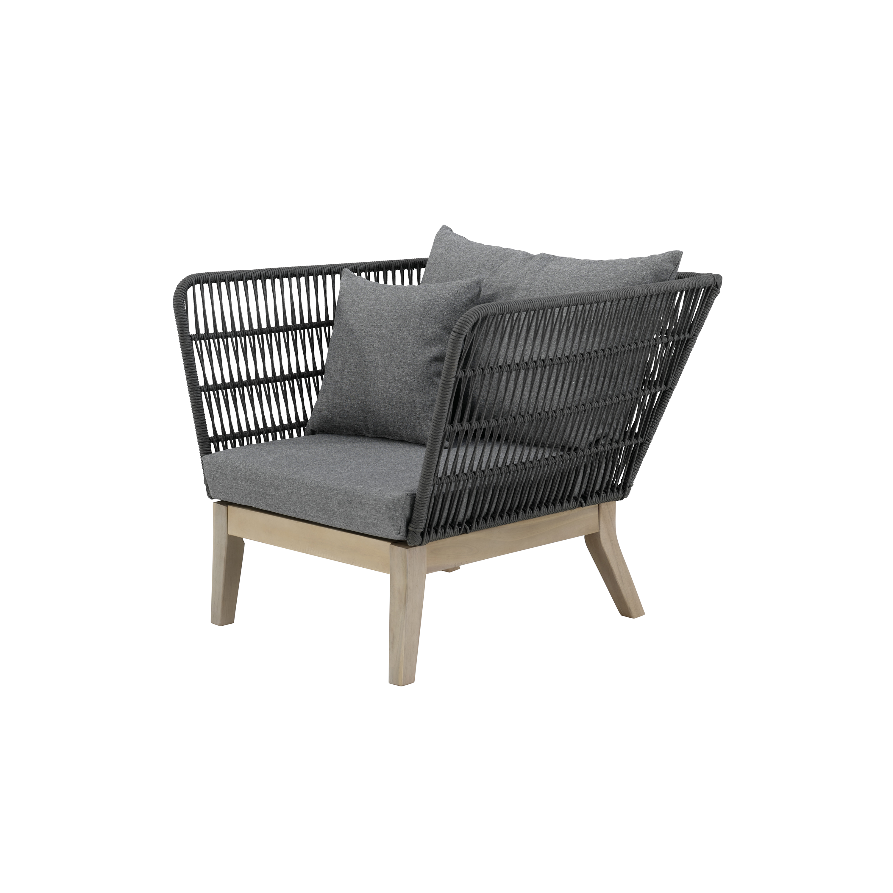 Struttura in legno. cuscino color antracite. Dim. L 80 x P 86 x H 70 cm. Cuscino sfoderabile consente una facile pulizia