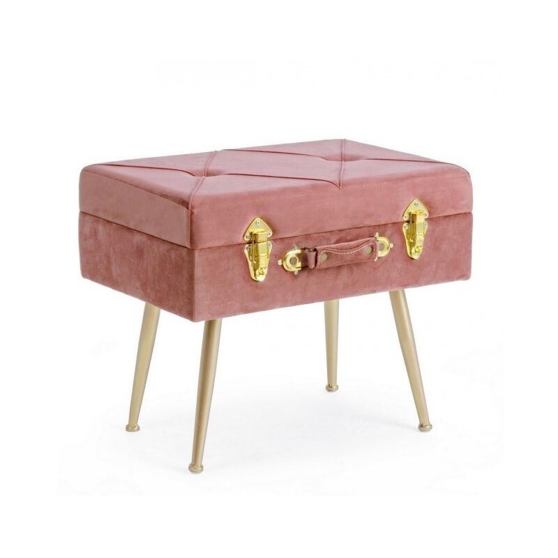 Sgabello con contenitore in velluto Rosa Antico POLINA 50x34x h42 cm Specifiche Struttura in MDF Rivestimento in poliestere, effetto velluto Colore Rosa Antico Imbottitura densità 30kg/m3 Gambe in acciaio, verniciato color oro, da assemblare Dimensioni Lunghezza 50 cm Profondità 34 cm Altezza 42 cm....