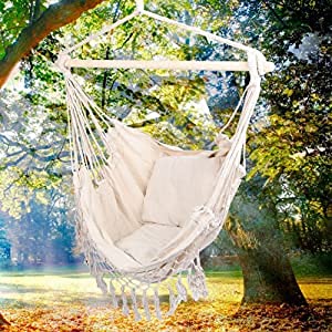 Con 2 cuscini: consegnati con 2 cuscini, potete ottenere un comfort supplementare di questa altalena, rendendo le vostre vacanze o le vacanze più piacevoli