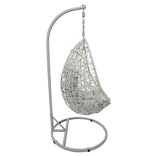 Sedia a dondolo sospesa con struttura in metallo intrecciato hularo, con cuscino grigio, adatta per il tuo balcone, terrazzo, giardino, esterno e interno