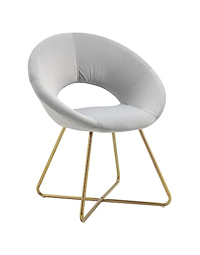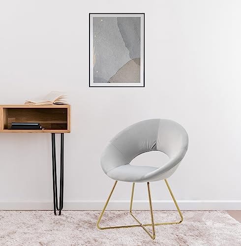 Poltrona Tonda Camera da Letto in Velluto Design Moderno, Sedia Imbottita Circolare con Gambe in Metallo Placcato Oro - Poltroncina per Salotto con Seduta Morbida Modello Grace - Grigio