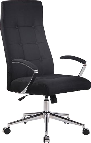 Poltrona Ufficio con Braccioli Fynn in Similpelle O Stoffa I Sedia Studio Direzionale Regolabile Telaio in Metallo Cromato, Colore:Nero, Materiale:Stoffa