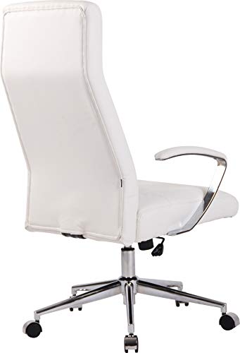Poltrona Ufficio Con Braccioli Fynn In Similpelle O Stoffa I Sedia Studio Direzionale Regolabile Telaio In Metallo Cromato, Colore:bianco, Materiale:Ecopelle