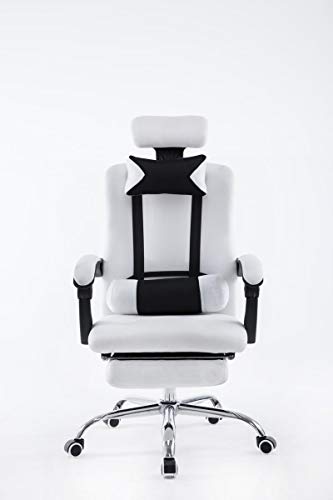 CLP Poltrona Ufficio Fellow In Stoffa A Rete I Sedia Studio Reclinabile Con Doppio Cuscino I Poltrona Gaming, Colore:bianco