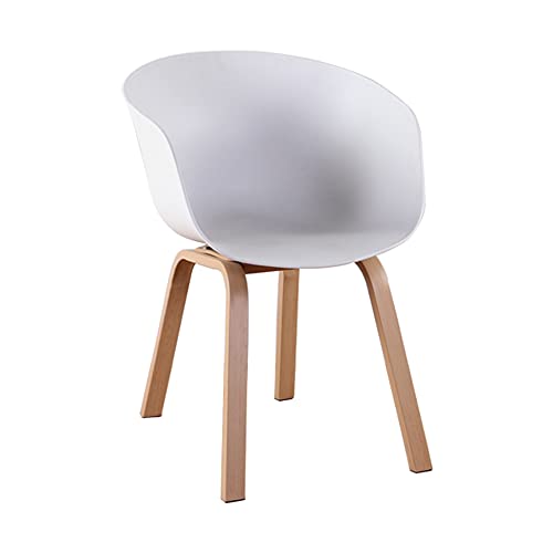 Sim - Set di 4 poltrone in plastica con gambe in legno di quercia, sedie per sala da pranzo, camera da letto, cucina, mobili per la casa, colore: bianco