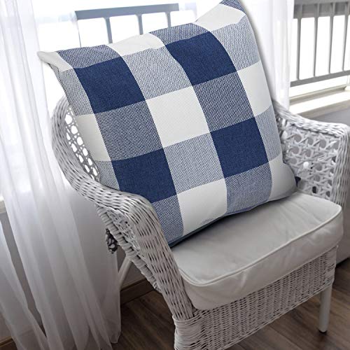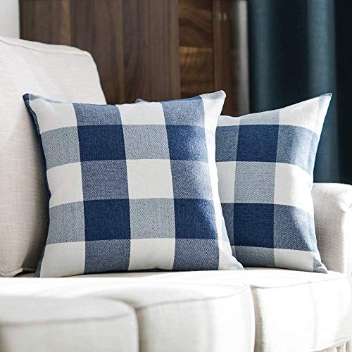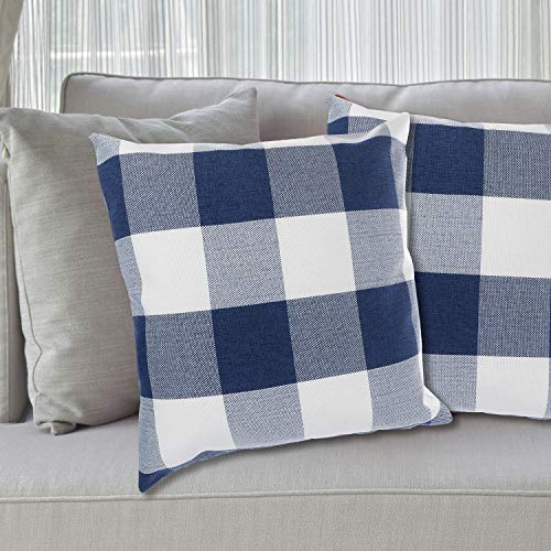 Poluka 2 federe per cuscino a quadri classici blu navy e bianco bufalo Plaid, federa quadrata con cerniera, per casa, camera da letto, auto, divano, 45 x 45 cm