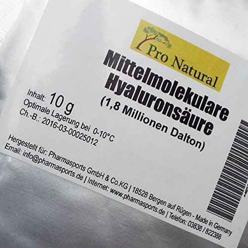 10 g di acido ialuronico a medio contenuto molecolare, 1,8 milioni Dalton.