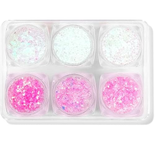✨【Set di 6 glitter】 Mescola la polvere glitterata, dalla polvere fine a quella grossolana per aggiungere un effetto glitter naturale. Non sbiadisce, nessun danno al corpo o alla pelle, applica direttamente su unghie, viso, corpo e capelli per far brillare le tue creazioni creative.