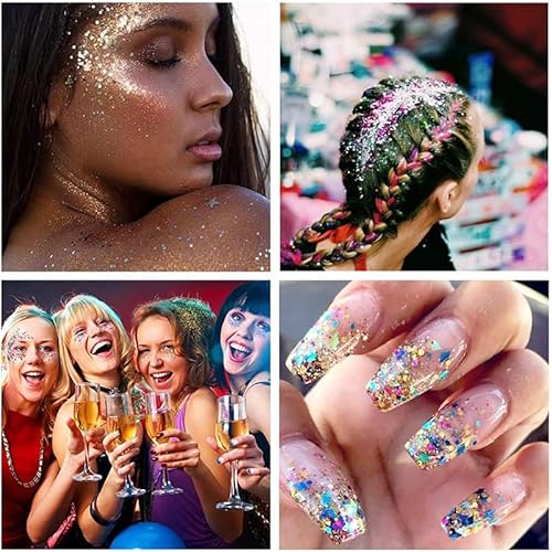 ✨【Ampia applicazione】 Questo grosso gel glitterato può essere applicato su occhi, clavicola, labbra, viso, spalle e altre aree. Adatto a festival, feste, decorazioni o decorazioni da ballo, Pasqua, festival musicali, per farti brillare. Particolarmente adatto per matrimoni, feste di compleanno, bar, spettacoli, palchi e altri luoghi. Sotto la luce naturale, il delicato glitter riflette più colori e fa il centro della folla.