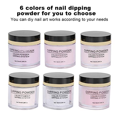 【Soddisfa le tue varie esigenze】 L'utilizzo di materiali ecocompatibili di alta qualità che sono innocui per il corpo umano può essere utilizzato con sicurezza. 6 colori di polvere per immersione per unghie tra cui scegliere, puoi creare opere di nail art fai-da-te in base alle tue esigenze. Adatto per uso domestico, salone di bellezza, ecc