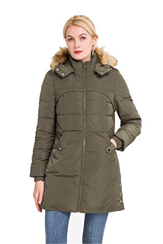 Polydeer Giacca Invernale Classica Morbida Imbottita Vegan Piumino Caldo Parka Imbottito con Cappuccio in Pelliccia Sintetica da Donna|Amy Green|Piccolo
