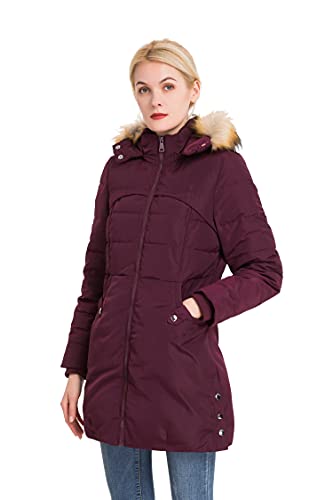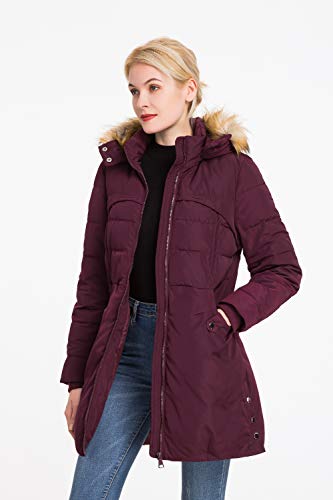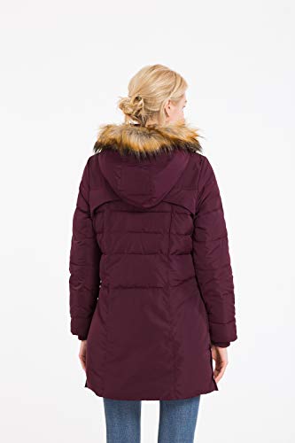 Polydeer Giacca Invernale Classica Morbida Imbottita Vegan Piumino Caldo Parka Imbottito con Cappuccio in Pelliccia Sintetica da Donna|Bordeaux|Medio