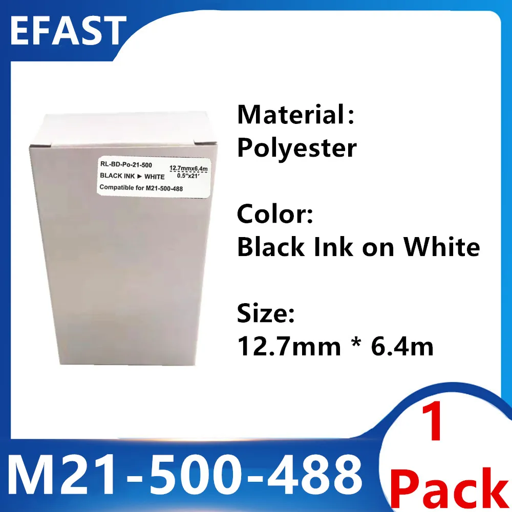 1 Pack M21 500 488 Polyester Label Ribbon Black On White For BMP21 PLUS Printer 12.7mm * 6.4m