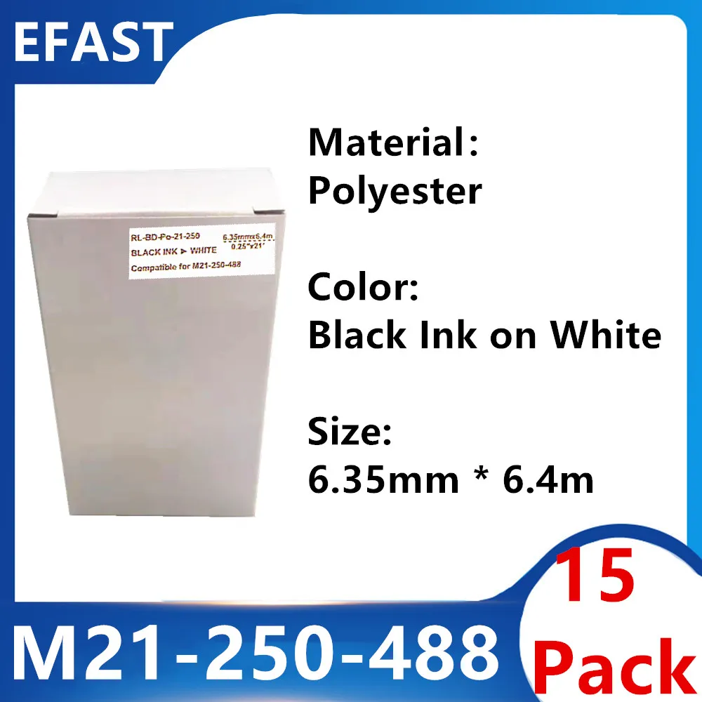 15 Pack M21 250 488 Polyester Label Ribbon M21-250-488 For BMP21 PLUS Printer Black On White M21-250-488 6.35mm * 4.9m