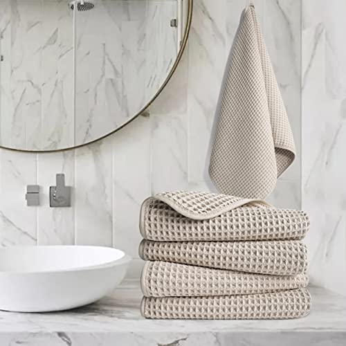 Polyte - asciugamano mani in microfibra anti-pelucchi - ad asciugatura rapida - essuto a nido d'ape - beige - 40 x 76 cm - set 4 pezzi