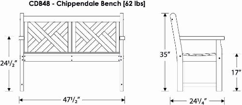 Polywood CDB48SA Chippendale 121,9 cm Bench, Sabbia