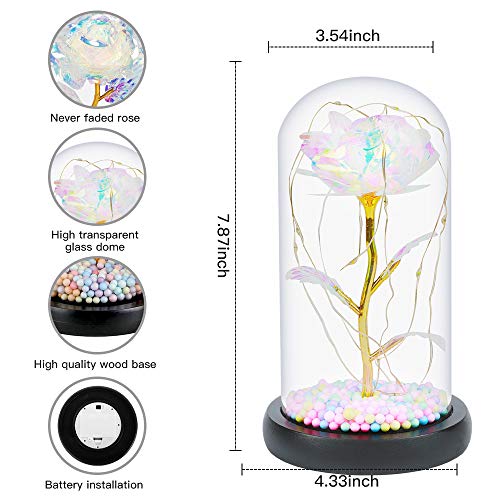 Rosone LED: la rosa in cupola di vetro è avvolta attorno a una striscia luminosa a LED, striscia luminosa a LED bianco caldo brillante. La luce rosa a LED può essere utilizzata durante il giorno e la notte per decorare i soggiorni o creare un'atmosfera romantica per creare apprezzamento, auguri, amore eterno, passione e romanticismo.
