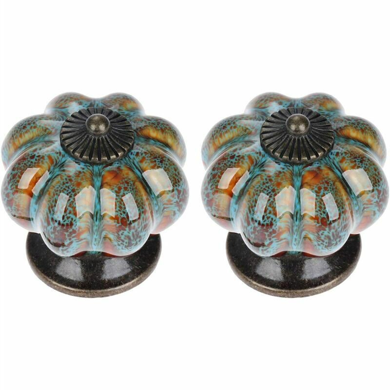 •Un set di 2 pomelli per mobili, 40 mm di diametro, 40 mm di altezza, e l'installazione è semplice. •I materiali ceramici sono lisci e facili da pulire, e la base in lega di zinco garantisce la stabilità.< br/>•Il manico a forma di zucca non è solo speciale e bello, ma anche molto comodo da impugnare. •Il pomello blu con motivo leopardato è retrò e speciale, che è la scelta ideale per la ristrutturazione di mobili.