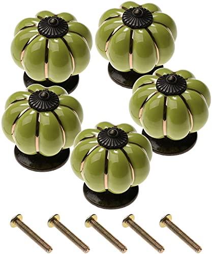 5 pomelli in ceramica a forma di zucca per credenze da cucina, maniglie per mobili da casa e ufficio (verde mela)