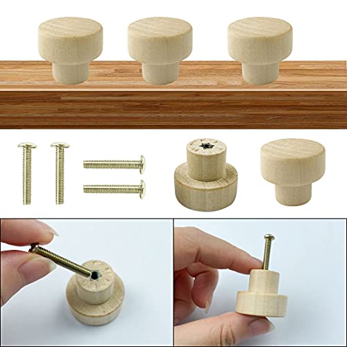 Pomelli Legno, Pomelli Per Mobili Legno, 20 Pezzi Pomelli Per Cassetti Rotondi in Legno, Maniglia dell'Armadio in Legno 2,9×2×1,7 cm, melli Per Cassetti in 'egno, Per Armadi, Cassetti, Scarpiere