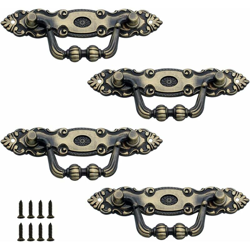Materiale in lega di zinco: la maniglia del mobile è realizzata in lega di zinco di alta qualità, con una superficie liscia, durevole e resistente all'usura e non facile da arrugginire. Stile retrò: il design della maniglia in bronzo contiene una ricca estetica storica e culturale, rendendo i tuoi mobili più eleganti e classici. Design della maniglia: i mobili antichi utilizzano il design della maniglia, che è molto comodo per tenere le cose, risparmiare tempo e fatica e la maniglia è facile da pulire. Ampiamente utilizzato: queste maniglie antiche sono adatte per ante, cassetti, armadietti in stile retrò, contenitori, armadietti da bagno e altri mobili. Facile da installare: ;