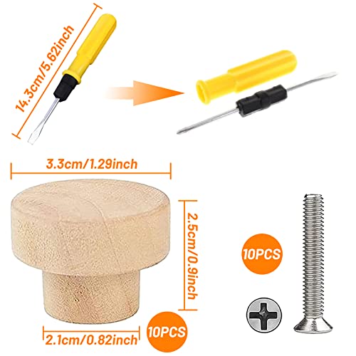 Pomelli per mobili in legno, 10 pezzi, 33 x 25 mm, rotondi, in legno, con viti e cacciaviti, maniglie per mobili, cassetti, mobili