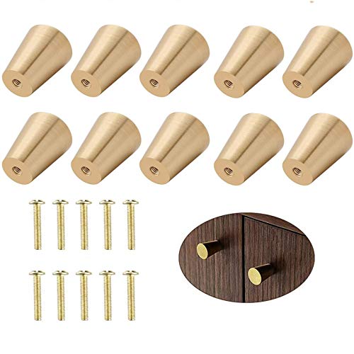 Pomelli per Mobili in Ottone Spazzolato, 10 Pezzi Maniglia Tonda Monoforo in Ottone Massiccio, Manopola in Ottone con Viti, Maniglie per Mobili Armadio Cassetto, Oro