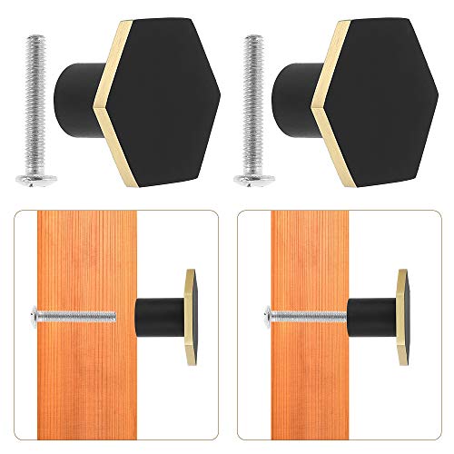 Set di 10 pomelli per porta, colore: nero, manopole per armadietti esagonali in ottone massiccio, maniglie per mobili da cucina, vintage con viti per armadietti (10 pezzi, 33 x 30 mm)