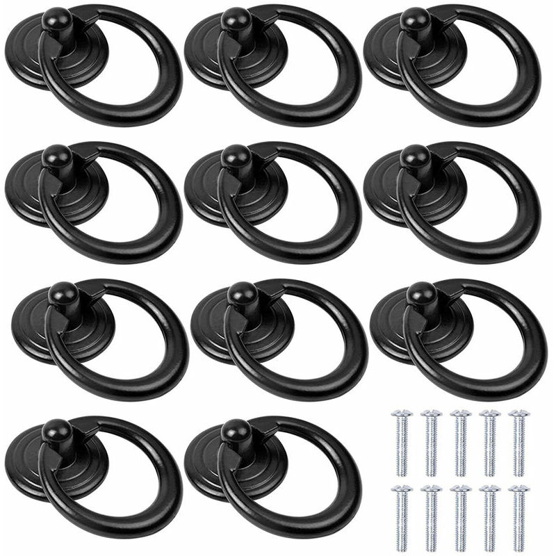 Specifiche del prodotto: Confezione da 10 impugnature ad anello nere ciascuna misura 31 x 44 mm, con viti incluse. Impugnatura ad anello: Semplici ed eleganti, questi tiranti ad anello retrò non passeranno mai di moda. Materiali di alta qualità: I nostri armadietti per cassetti sono realizzati in lega di zinco, che sono forti e resistenti alla ruggine. Ampiamente applicabile: Adatto a tutti gli stili di armadi, cassetti, cassettiere, porte e altri mobili.