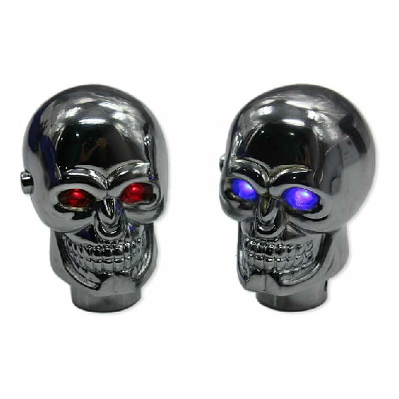 Pomello del cambio a forma di teschio, fantastici accessori per la modifica dell'auto. 3 diverse impostazioni, modalità di lampeggio: sempre acceso, lampeggio veloce, lampeggio lento. Installazione facile. Metallo unico e alluminio di alta qualità. Adatto a tutte le vetture con cambio manuale, adatto solo per leve cambio tonde. Ci sono 3 manicotti, adatti a diversi diametri del cambio da 10mm a 12mm. Descrizione prodotto Colore: LED blu Diametro ingresso: 1,5 cm Gli occhi del teschio sono luci a LED con interruttore sul lato. Modalità lampeggiante: luce fissa, lampeggio veloce, lampeggio lento. Facile da installare grazie agli strumenti forniti. Materiale: lega di alluminio, LED Dimensioni (circa): 6,7 x 4 cm Colore teschio: argento Colore luce: rosso, blu Confezione: 1 x Pomello del cambio a LED 3 accessori in gomma (8 mm, 10 mm, 12 mm)
