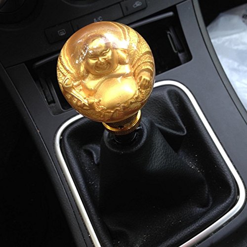 SMKJ Pomello per cambio, universale, con Buddha, in resina, per autovetture dotate di cambio manuale o automatico senza RGA, di colore oro