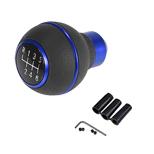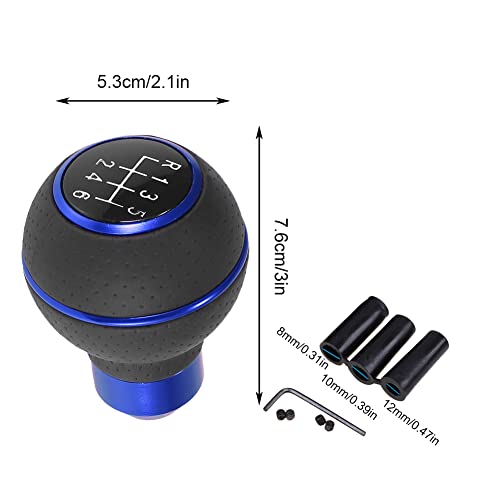 Pomello del cambio per auto, pomello universale del cambio manuale ABS+PU con 3 adattatori da 8 mm, 10 mm, 12 mm, per la maggior parte degli ingranaggi manuali (blu, 6 velocità)