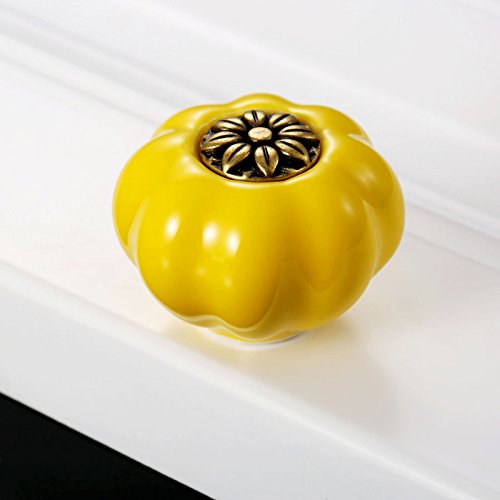 Pomello in ceramica a forma di zucca, in stile vintage per porte di armadietti da cucina, a foro singolo, con viti, Yellow, 5pcs