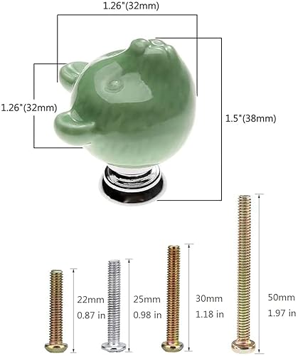 6 Pomoli in ceramica a forma di orso per armadietti, pomelli per mobili per bambini, pomelli per armadio, maniglie per mobili, Pomelli Cucina con 4 Dimensioni Vite (verde)