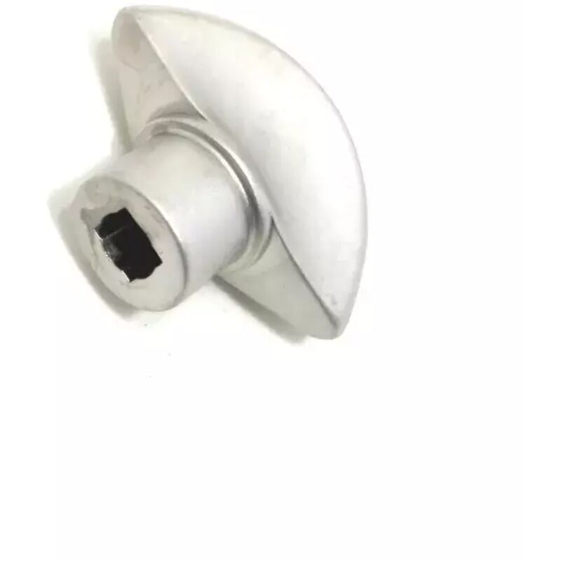 Pomolo in zama per cilindro a codolo con impugnatura ovale finitura ottone nichelato opaco.