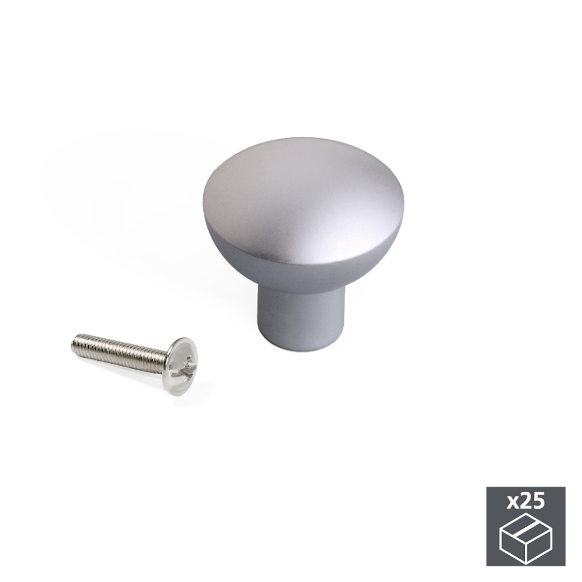 Prodotto in alluminio con finitura anodizzata opaca. Viti M4 per l'installazione incluse. Ogni lotto include 25 pomoli, imballati singolarmente per evitare graffi.. Emuca Pomolo per mobile, D. 25 mm, Alluminio, Anodizzato opaco, 25 u.. Il pomolo Verona per mobili è prodotto in alluminio con un design moderno ed attuale.E' pensato per ogni tipo di cassetto ed anta d'armadio. E' un pomolo ideale per mobili da cucina, bagno, casa ed ufficio . Le viti M4 per l'installazione sono incluse. Ogni pomolo è imballato singolarmente per evitare urti e graffi.