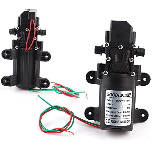 Pompa Acqua a Membrana 72W 12V 6A, Pompa a Membrana Pompa Spruzzatore Autoadescante 0.9Mpa 6.0L/Min, Tubo Diritto Uscita Acqua Su Entrambi I Lati Destra per Irrigazione Fiori, Irrorazione Giardino