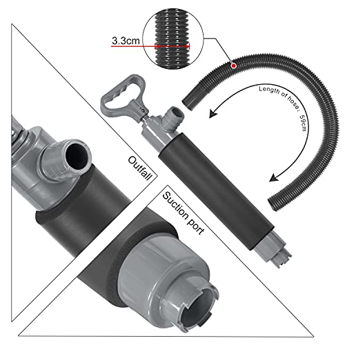 Facile da Drenare: Il lungo tubo incluso nella pompa a mano di sentina facilita lo scarico, raggiunge più facilmente il fondo del contenitore e scarica più velocemente l'acqua in eccesso, evitando ribaltamenti o sommergimenti.