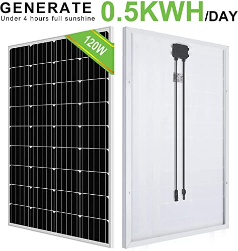 [Prestazioni stabili, maggiore compatibilità] Il pannello solare monocristallino da 120 W può fornire 400 Wh/giorno (luce sufficiente per 4 ore) e la potenza di uscita è stabile. È possibile collegare più cellule solari in parallelo o in serie, in modo da poter ottenere più potenza e corrente.