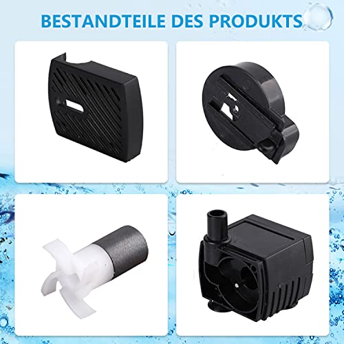 CAM2 Mini pompa ad acqua, ultra silenziosa, con cavo di alimentazione da 1,5 m, 350 l/h, 5 W, pompa a immersione, piccola pompa per fontana, 2 ugelli per acquario, giardino, fontane