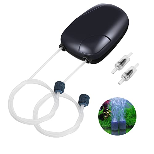 Pompa Acquario, Pompa di Ossigeno per Acquario, Ossigenatore per Acquario, Pompa di Ossigeno per Acquario Ultra Silenziosa, con Pietre D'aria, Valvole Ritegno, Tubi in Silicone, per Acquario, Stagno