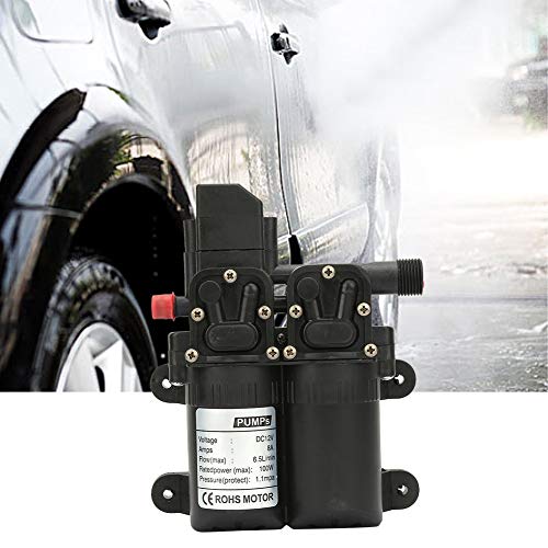 Pompa autoadescante, pompa acqua ad alta pressione a doppia membrana con pompa a diaframma 12V 100W per la pulizia di roulotte, barca, auto, ecc.(Nero)