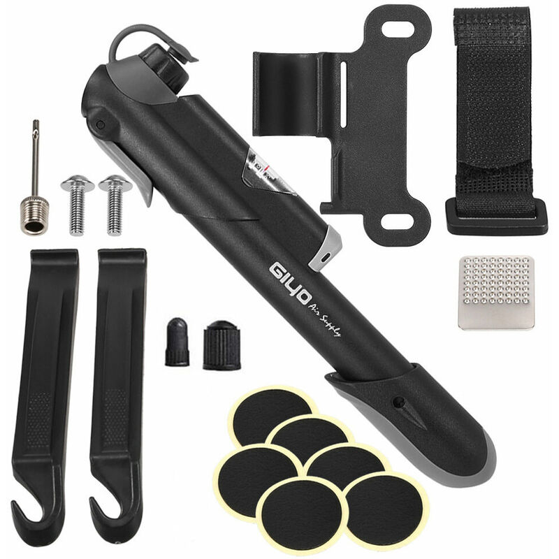 Nero Lunghezza: 23 cm / 9,05 pollici Peso: 140 g / 0,31 libbre La confezione include Mini bici Pompa Tavoletta di macinazione Cinghia in velcro Staffa di montaggio Ago per gonfiare la sfera Viti di fissaggio Mini barre di leva Toppe per pneumatici
