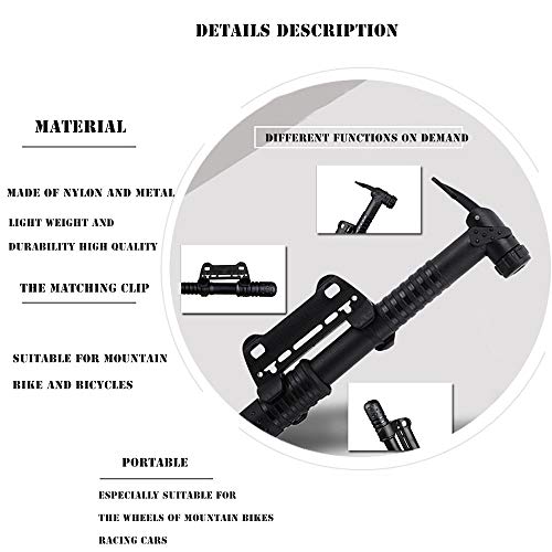 4. Portatile: la lunghezza della mini pompa da bicicletta è di 23 cm, la larghezza è di 5 cm e il peso è di soli 110 grammi e può essere riposta in sicurezza sulla bicicletta.