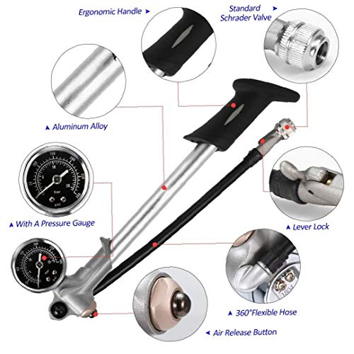 -REGOLAZIONE PRECISA: pompa ammortizzatore moto costruita nel pulsante di mettere a punto spurgo per ottenere la pressione esatta per il 'comfort' sul vostro giro