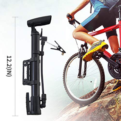 Mini pompa per bicicletta ultra leggero portatile bicicletta pompa Presta e Schrader pompa per Road mountain BMX, biciclette, motociclette e Moutain Bike - -Plus Ball Needle balloon/pompa piscina materassino/materassino caricabatteria (nero)