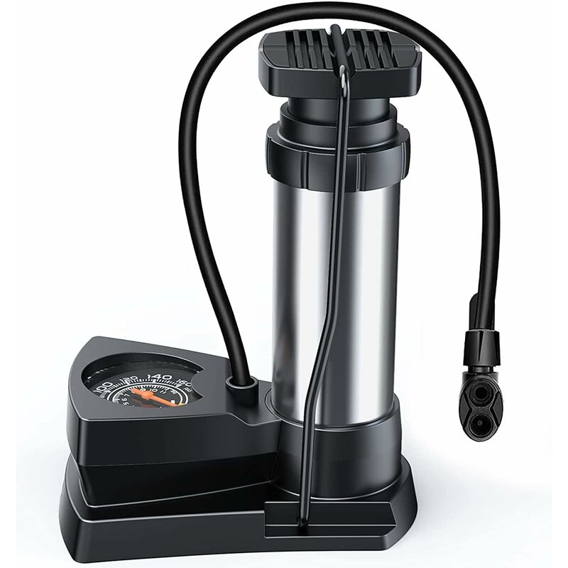 Questa mini pompa da bicicletta è realizzata al 100% in lega di alluminio, è di piccole dimensioni e alta come una borraccia. Dopo il restringimento, è più compatto e puoi riporlo liberamente nella borsa della bicicletta, nello zaino e in altri luoghi. Patch per pneumatici gratuito per la riparazione dei pneumatici in qualsiasi momento. La pompa per pneumatici azionata a mano e a pedale rende il pompaggio molto più veloce e facile. Il pedale in gomma antiscivolo rende la pompa più stabile durante l'utilizzo. Alta pressione, manometro fino a 11 bar e 160 psi, gonfiaggio rapido e risparmio di tempo.La valvola dal design migliorato è ben compatibile con le valvole Presta, Schrader, Dunlop, che non sono solo per biciclette, ma anche per veicoli elettrici, motocicli o persino un'auto (solo in caso di emergenza), L'ago aggiuntivo e la valvola del gas nella confezione aiutano a gonfiare palloni, palloncini, anelli da nuoto, gommoni, ecc. Il tubo in gomma della pompa da bicicletta portatile è