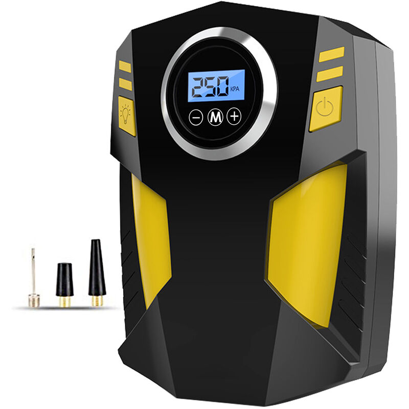 Caratteristiche: Gonfiaggio veloce e lettura accurata - Gonfiaggio notevolmente veloce e silenzioso, puo gonfiare i pneumatici della tua auto con circa 35 L / min in circa 3-5 minuti. E quando colleghi l'unita al pneumatico, ti mostrera la pressione corrente, la pressione di esercizio massima e 150 psi. Puoi monitorarlo mentre si riempie e misurare la pressione dei pneumatici per mantenere i pneumatici della tua auto alla pressione normale in ogni momento. Facile da usare: utilizzare il pulsante "M" per accedere alla modalita di impostazione, premere il pulsante "+/-" per regolare la pressione desiderata e premere il pulsante "On / Off" per avviarla. Il compressore d'aria si spegnera automaticamente quando raggiunge il PSI desiderato per evitare un gonfiaggio eccessivo. Dotato di presa accendisigari DC 12V, estremamente facile da usare. Flash Light - La torcia a LED luminosa ti consente di controllare chiaramente il pneumatico al buio, aiuta in situazioni di emergenza. Porta molta